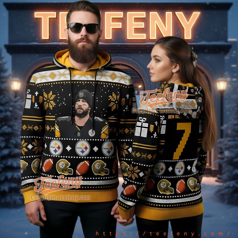 Don’t miss out on this must-have piece perfect for gifting to the avid football fan in your life. Celebrate the season and the legacy with the Pittsburgh Steelers Ben Roethlisberger Ugly Christmas 3D Hoodie. Make it yours today and enjoy the blend of holiday cheer and team loyalty!