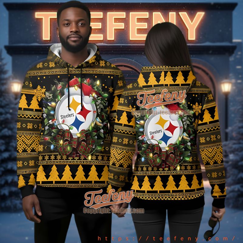Don’t miss out on this fun holiday staple! Embrace the joy of the season while proudly displaying your support. The Pittsburgh Steelers Christmas Wreath Light Ugly 3D Hoodie is the perfect gift for fellow fans or a must-have for yourself. Grab yours today and make this holiday memorable!