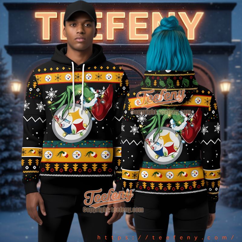 Don’t let the holidays pass by without embracing your team spirit in style! Make a statement and spread holiday cheer with the Pittsburgh Steelers Funny Grinch Light Ugly Christmas 3D Hoodie—it’s the perfect gift for fans and a must-have apparel for anyone looking to combine fun and fandom this season.