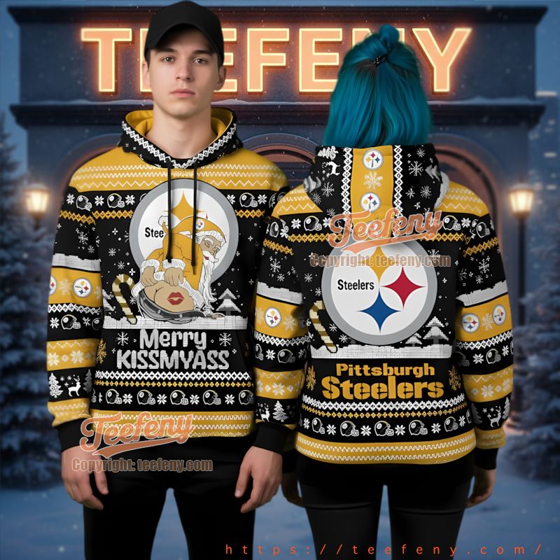 Don’t miss out on this must-have apparel; it’s a fantastic gift for any Steelers fan in your life. Make a statement this holiday season with the Pittsburgh Steelers Funny Merry Kiss My Ass Ugly Christmas 3D Hoodie and spread some joy while flaunting your team spirit!