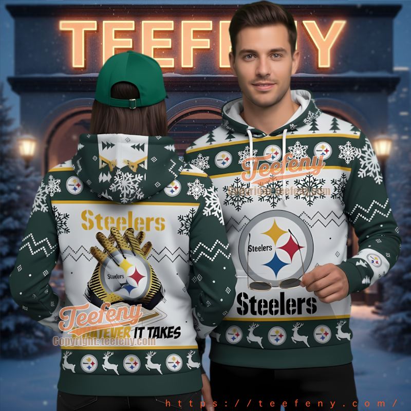 Product information "Pittsburgh Steelers Gameday Ugly Christmas 3D Hoodie Snowflakes Design"