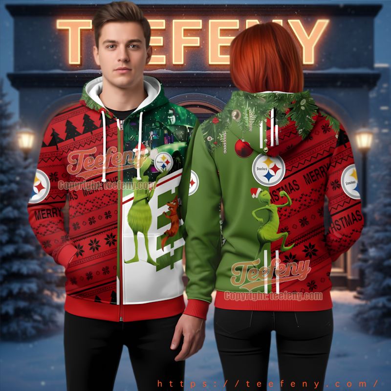 Embrace the holiday spirit with the Pittsburgh Steelers Grinch Scooby Doo Print Ugly Christmas 3D Hoodie, a playful blend of fandom and fun. This whimsical design captures the essence of holiday cheer while showcasing your love for the Steelers, making it a delightful addition to any festive wardrobe. Discover the perfect way to express your team pride while staying cozy and stylish this season.