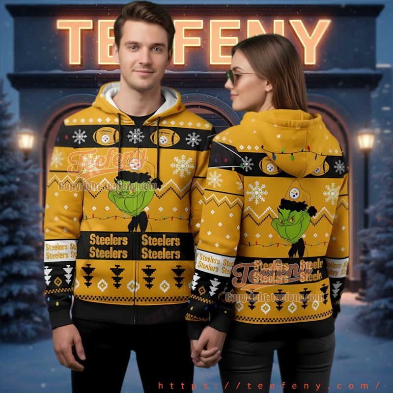 Don’t miss out on this must-have piece that reflects your loyalty and holiday cheer! Whether for yourself or as an ideal gift for a fellow fan, the Pittsburgh Steelers Grinch Ugly Christmas 3D Zip Hoodie is the perfect way to celebrate the season and the team you love. Order your festive hoodie today and show off your spirit!