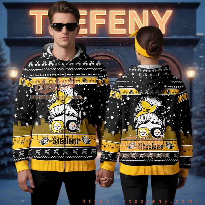 Don’t miss out on this must-have apparel that captures the essence of the season while showcasing your team pride. Gift it to your favorite Steelers fan or add it to your collection; the Pittsburgh Steelers Messy Bun Christmas Hoodie 3D Print is a delightful addition that will brighten any holiday celebration.