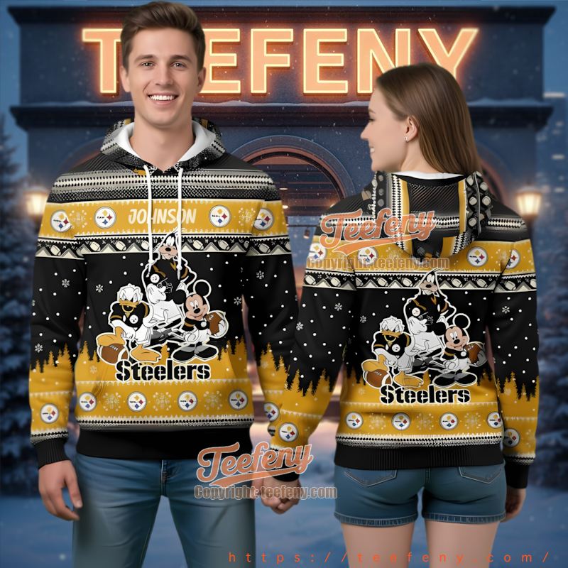 Product information "Pittsburgh Steelers Personalized Disney Ugly Christmas 3D Hoodie Mickey Donald Goofy"