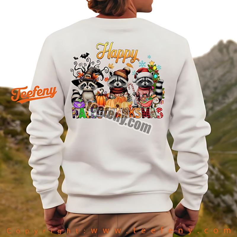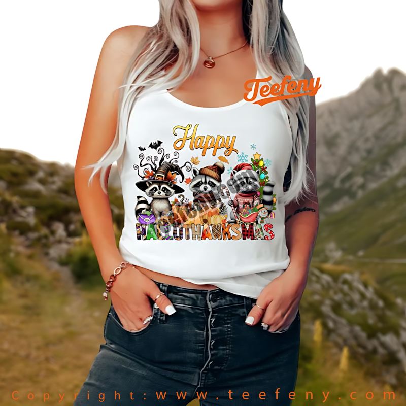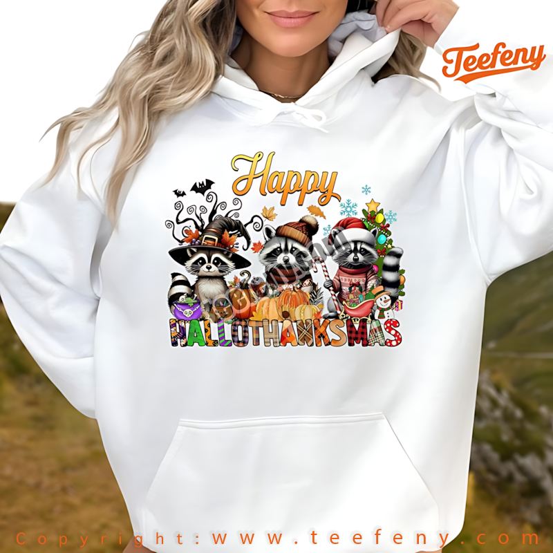Embrace the spirit of the season with our Raccoon Hallothanksmas Shirt Happy Hallothanksmas Holiday Combo. This delightful tee merges Halloween and Christmas, bringing joy to your festive celebrations. Perfect for all who love to enjoy both holidays, this shirt is an eye-catching way to express your holiday spirit while being comfortable and stylish.