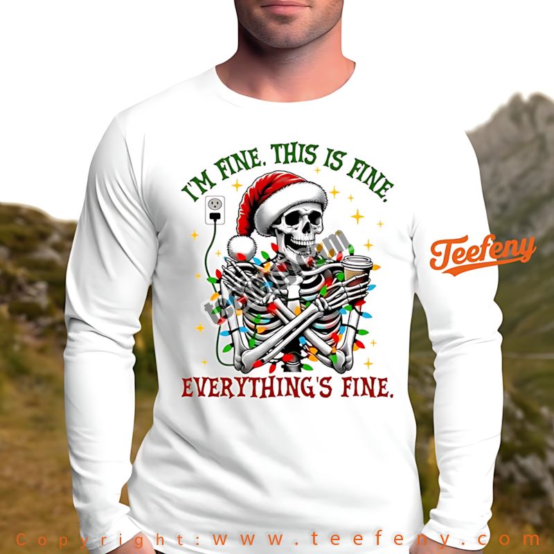 Embrace the quirky spirit of the holidays with our Skeleton Christmas Lights Shirt Im Fine This Is Fine. This unique design combines humor and festive flair, making it the perfect choice for those wanting to showcase their lighthearted attitude during the season. Celebrate in style with this charming apparel that puts a fun spin on the traditional holiday attire.