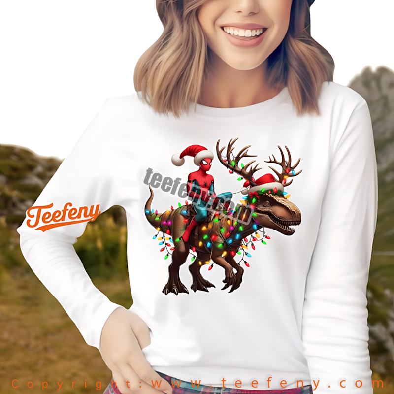 Get ready to spread holiday cheer with the Spiderman T Rex Christmas Shirt Spiderman Riding Dinosaur. This unique design brings together the magic of Christmas and your favorite superhero in one must-have apparel piece, perfect for those festive gatherings and cozy celebrations. Whether you’re a lifelong Spiderman fan or just love a quirky twist on traditional holiday wear, this shirt is sure to turn heads and spark joy.